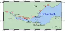 Map of the Firth of Forth showing (in red) some of the destinations served from the pier in its heyday