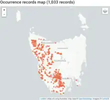 T. cunninghamii is found only in subalpine forests and rainforest in Tasmania.[5][3] It is commonly found in the understorey layer of forests in the Central Plateau and western Tasmania.[5] T. cunninghamii can also sometimes be found in alpine woodland and rocky habitats at high altitudes.[6] Almost all recorded sightings are restricted to the western half of Tasmania.[3]