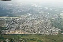 The neighbourhood is a large whole-planned bedroom district housing the population of at least 240,000 residents[1] but also includes a small industrial area. Troieshchyna only became part of Kyiv municipality in 1988; prior to that it was a village of Kyiv Oblast which still exists on the edge of the new neighborhood.