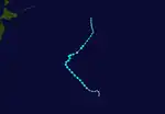 | Peak intensity | 100 km/h (65 mph) (10-min); 975 hPa (mbar) |