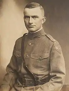 The 4th Division, on its own for the first time in the war, was assigned a front that was one to two miles wide, sandwiched between two seasoned French divisions, about eight miles from Verdun. Lieutenant Colonel Middleton's battalion led the attack for the Americans on 26 September 1918. That day, they covered five miles, breaking through German defenses, after which it was up to the entire 47th Infantry Regiment to hold onto the gains.[38] Middleton then put his second-in-command in charge of the battalion when he was assigned as the executive officer of the regiment. He was in this staff position for two weeks when, on 11 October, he was given command of the 39th Infantry Regiment after commander James K. Parsons and most of his regimental staff became casualties following a gas attack.[39] At about one o'clock in the morning, Middleton had to find his way to the 39th headquarters and prepare for battle at daybreak. Shortly before 7:30 a.m., Middleton led his new regiment into enemy-held territory using a tactic called "marching fire," where all of the troops constantly fired their weapons while moving a mile through heavy woods. This compelled most of the dug-in and concealed Germans to surrender, and allowed the 4th Division to move to the edge of the Meuse River.[40] Three days after taking command of the 39th, and two days after his twenty-ninth birthday, Middleton was promoted to colonel, becoming the youngest officer in the American Expeditionary Forces (AEF) to attain that rank.[40] He also received the Army Distinguished Service Medal for his exceptional battlefield performance.[41] The citation for the medal reads: