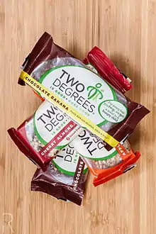 Two Degrees Food was a one-for-one food company that produced vegan snack bars. One of their main ways to promote their business was using some of their profit to give food to hungry children.[1] Two Degrees Food has provided meals to children in areas including the United States, Kenya, India, Malawi, Somalia, Colombia, and Myanmar.[2][3][4][5]