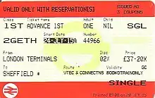 On the APTIS, PORTIS/SPORTIS and other computerised ticket issuing systems, a "status code" field is provided on each ticket issued. This is left blank if an adult is travelling at full (undiscounted) fare; but if any discount or other special condition applies, a code of up to five letters appears. The status code 2GETH is used to identify a ticket bought with a Two Together Railcard.[1]
