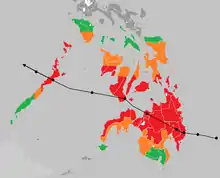 - ↑ Jalad, Ricardo B. (October 5, 2018). Situational Report No.55 re Preparedness Measures for TY OMPONG (I.N. MANGKHUT) (PDF) (Technical report). NDRRMC. Retrieved October 7, 2018.