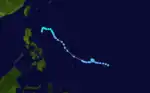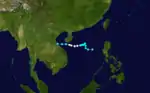 The initial disturbance was first spotted 250 miles (402 km) east of Mindanao. Moving westward for the next few days without development, the system moved into the South China Sea. The system became a tropical storm on October 7 to due significantly increased low-level southwesterlies spinning up its circulation. The cyclone then moved west-northwest, striking Nha Trang, Vietnam. The convective pattern was slow to fade as it drifted westward across Indochina over the next few days.[19] Forty perished during this tropical cyclone.[1]