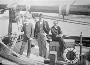 - ↑ NOAA Photo Library No caption. Perhaps a dependents cruise on the Bureau of Fisheries schooner GRAMPUS. The GRAMPUS was condemned and sold in 1918.