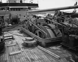 In 1952 Neptune was assigned to Project Caesar, the unclassified name for the installation phase of SOSUS. The system's mission was declassified in 1991.[9] On 17 February 1953 the ship was named Neptune and withdrawn from the reserve fleet.[6] The ship then went to the Bethlehem Steel Co. in Baltimore, Maryland for a number of modifications: e.g., electric cable machinery (in place of steam), precision navigation instrumentation, and a helicopter platform over the fantail.[5] Cable drums 15 ft (4.6 m) in diameter and bow sheaves spanning 12 ft (3.7 m) were among the more visible modifications.[10] On 1 June 1953 the ship was commissioned USS Neptune (ARC-2).[5]