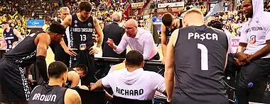 U-Banca Transilvania Cluj-Napoca, commonly known as U-BT Cluj-Napoca, is a professional basketball club based in Cluj-Napoca, Romania that competes domestically in the Liga Națională de Baschet and internationally in the EuroCup. Like other teams that were initially part of the Universitatea Cluj multi sports club, the basketball team keeps the letter U (short form of Universitatea) in its name.[1] The main sponsor of the team is the locally based banking institution Banca Transilvania.[4] The team colors are black and white. U-BT Cluj plays its home games at the BTarena, which accommodates 10,000 spectators,[3][8] or in Horia Demian Sports Hall with a capacity of 2,525 spectators.[8]