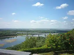 View of the rail bridge in Ufa and the mouth of the Dyoma River