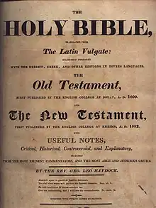 - ↑ "CATHOLIC ENCYCLOPEDIA: George Leo Haydock". www.newadvent.org. Retrieved 17 October 2008.