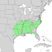 Ulmus alata, the winged elm or wahoo, is a small- to medium-sized deciduous tree endemic to the woodlands of the southeastern and south-central United States. The species is tolerant of a wide range of soils, and of ponding, but is the least shade-tolerant of the North American elms. Its growth rate is often very slow, the trunk increasing in diameter by less than 5 mm (316 in) per year. The tree is occasionally considered a nuisance as it readily invades old fields, forest clearings, and rangelands, proving particularly difficult to eradicate with herbicides.[2]