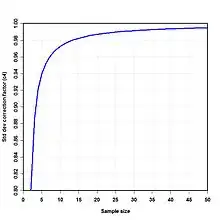 where the correction factor is the scale mean of the chi distribution with degrees of freedom, . This depends on the sample size n, and is given as follows:[1]