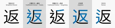 - ↑ "Chapter 18: East Asia, Principles of Han Unification" (PDF). The Unicode Standard. Unicode Consortium.
