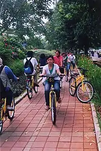 Since 2007, Universitas Indonesia has offered a bike rental facility for its students. For the rent, students need to show their UI student card to the rental officer. The bike must be used on bike lanes and it must be returned to where it was rented or another bike station. Campus bikes can be rented until 5:00 PM.