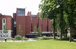 Owens College was founded in 1851 and the college library began with donations from James Heywood (1,200 volumes) and William Charles Henry in the first year. The first large addition to stock was the library of James Prince Lee, bishop of Manchester, 7,000 volumes in 1869 and then a further instalment. The collection contained theology, church history and fine art. Over the following 30 years, many additions were made such as the personal libraries of E. A. Freeman (6,000 volumes) and Robert Angus Smith (4,000 volumes).[14] In 1904 the Owens College Library became the Manchester University Library when the college merged with the Victoria University of Manchester which had been so named in 1903. The library had three locations in its early years, Cobden's House on Quay Street, the John Owens Building between 1873 and 1898 and the Christie Building from autumn 1898. From 1903 the librarian (Charles Leigh) improved the administration of the library by introducing the Dewey Decimal Classification and higher cataloguing standards. On the death of Richard Copley Christie the library received his personal library of over 8,000 volumes including many rare books from the Renaissance period. By 1933 the Christie Library's stock amounted to 256,000 volumes.[15] In 1936 the library was divided into two when the Arts Library opened on Lime Grove. Thereafter the Christie Building contained only scientific and technical literature. The medical school had its own library founded in 1834 as the library of the Manchester Medical Society accommodated in Owens College once the Medical School was established there in 1874 and on its centenary in 1934 was enriched by the Manchester Collection of E. Bosdin Leech relating to the medical history of the Manchester district. From 1919 the Deaf Education collection was established and was significantly enlarged by Abraham Farrar's bequest.[16][17][18]