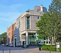 The McDade Center for Literary and Performing Arts was constructed in 1992 on the former site of the Lackawanna County Juvenile Center. Home to the university's English & Theatre department's classrooms, offices, labs, meeting spaces, and a black box studio theatre,[74] the McDade Center also houses the 300-seat Royal Theater where the University Players stage their productions.[75] The building's other features include a computer writing and instructions lab, a seminar room, a small screening room for film classes and an office for Esprit, the university's Review of Arts and Letters.[75] Additionally, the building contains stained glass in the lobby and an engraved quotation above the main entrance.[75]