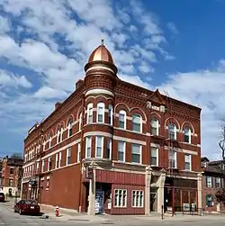 The Upper Iowa Street Historic District is a nationally recognized historic district located in Dubuque, Iowa, United States. It was listed on the National Register of Historic Places in 2015.[1] At the time of its nomination it consisted of nine resources, which included eight contributing buildings and one non-contributing building.[2] The district is a single block with commercial and residential buildings on both sides of Iowa Street.[2] It was originally a residential section on the north side of the central business district. The first two commercial buildings were substantial Italianate-style structures constructed on the north side of the block in the mid-1880s. In the 1890s larger and more elaborate Queen Anne commercial buildings were built to the south. The oldest building is an 1872 residence that was used as a doctor's office and other business purposes. It has subsequently been covered in Permastone. The rest of the buildings are brick with stone ornamentation.