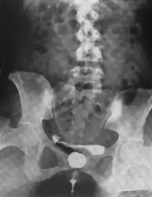 Urethral diverticulum can occur in men, and can cause complications including urethral stones and urinary tract infections.[5]