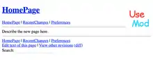 ![]() Default homepage of UseModWiki 1.2.1 | |