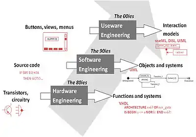Consequently, Useware engineering developed in a similar way to the development of engineering processes (see fig. 2). This reinforces the principal demand for structured development of user-centered user interfaces expressed e.g. by Ben Shneiderman.[4] After many years of function-oriented development human abilities and needs are brought into focus. The only promising method to develop future technology products and systems is to understand the users’ abilities and limitations and to aim the technology in that direction.[1]