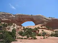 With the creation of the U.S. Highway system in 1926, SR-8 and SR-9 each received a second designation, US-50 and U.S. Route 450 respectively.[4][10] The state legislature redefined all the state routes in 1927, and moved SR-8 to a direct Floy-Thompson cutoff,[11] with both roads from Valley City to Floy and Thompson becoming SR-9.[12] The Monticello-Bluff road was assigned State Route 47 and extended to Mexican Hat at that time[13] and to the Arizona state line in 1931.[14] The State Road Commission designated a new alignment of SR-9 to Crescent Junction on SR-8 in 1934, replacing both branches to Floy and Thompsons,[7] and the legislature updated the description in 1935;[15] at that time, US-450 was extended from Valley City to Crescent Junction on the new SR-8 (US-50) cutoff.[16]