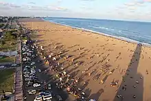 - Marina Beach is a 13-km-long urban beach along the Bay of Bengal that runs from Fort St. George in the north up to Foreshore Estate in the south. It is India's longest beach and one of the world's longest beaches and attracts around 50,000 visitors during weekends. Attractions at the Marina include the Chennai Lighthouse, MGR Memorial, Anna Memorial and Jayalalitha Memorial. The Marina's 6 km promenade includes statues of several historical figures including Mahatma Gandhi, Annie Besant, Robert Caldwell, Thiruvalluvar, Bharathiyar and Kamrajar.
