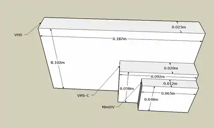 VHS-C is the compact variant of the VHS videocassette format, introduced by Victor Company of Japan (JVC) in 1982,[1] and used primarily for consumer-grade compact analog recording camcorders. The format is based on the same video tape as is used in VHS, and can be played back in a standard VHS VCR with an adapter.[2] An improved version named S-VHS-C was also developed. S-VHS's main competitor was Video8; however both became obsolete in the marketplace by the digital video formats MiniDV and MiniDVD, which have smaller form factors.