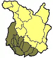 The 11 Comuni of Valdinievole shown in brown within the province of Pistoia