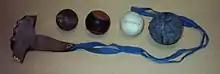 - Galotxetes ball: Used only for Galotxetes, it is very big and heavy, but it can be played without protection. It cannot bounce. It is made of rags with sticking pasters. It weighs 60 grams (2.1 oz) with a diameter of 70 millimetres (2.8 in).