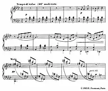 The piece is divided in several small parts, in a late romantic style rather than the impressionism for which he is known.