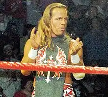 After a successful tag team win at Backlash, in which Shawn Michaels and Hulk Hogan defeated Muhammad Hassan and Daivari.[8] Michaels and Hogan were placed in tag team match against Kurt Angle and Carlito on an episode of Raw. The match saw Hogan and Michaels get the victory.[38] During the post-match pose, Michaels superkicked Hogan, which knocked Hogan to the ground and turning Michaels heel for the first time since returning to the company in 2002.[38] The following week, Michaels challenged Hogan to a match at SummerSlam,[34][39] which Hogan accepted.[40] In this match, Hogan maintained his perfect record at SummerSlam by defeating Michaels.[41]