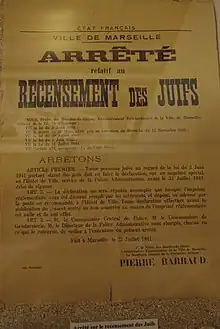 - October 4, 1940: prefects can detain foreigners of Jewish extraction in special camps or to assign residence.