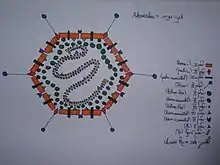 Vinnexin is a transmembrane protein whose DNA code is held in a virus genome. When the virus genome is expressed in a cell the vinnexin gene from the virus is made into a functioning protein by the infected cell. The vinnexin protein is then incorporated into the host's cell membranes to alter the way the hosts cells communicate with each other. The altered communication aids the transmission and replication of the virus in complex ways. The communication structure that the vinnexin is involved in is the gap junction and vinnexin forms part of a wider family of proteins that are innexin homologues referred to as pannexins.[1] So far Vinnexins have only been found in Adenovirus and the way they affect the functioning of innexins is being studied in great detail.[2]
