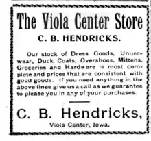 - ↑ "Viola Center High School". Audubon Republican. (Audubon, Iowa), November 22, 1906. November 22, 1906. p. 4. Retrieved May 24, 2021.