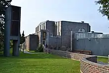 The church was built in 1969 and designed by architect Per Erik Nilsson. It's built of brick and pine wood. The decorative glass in the church is made by artist Jan Wichelgren, while Christine Wichelgren has made the textiles.[1]