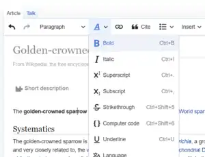 ![]() VisualEditor's text formatting menu | |
