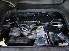 Powering the SP2 is a "BL" code four-cylinder Volkswagen air-cooled engine displacing 1.7 L.[37] This version of VW's boxer four is called the "suitcase" or "pancake" engine, and has its cooling fan on the end of the crankshaft, reducing engine height.[37] It makes 65 (DIN) hp and gives the SP2 a top speed of 161 km/h (100 mph). The SP2 takes 17.4 seconds to accelerate to 100 km/h (62 mph).