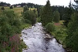 From Modrava, the Vydra flows northward and merges with the Křemelná west of Svojše to form the Otava.