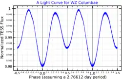 A light curve for WZ Columbae, plotted from TESS data[1]