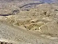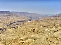 The Wadi Mujib (Arabic: وادي الموجب, Wadi el-Mujib), also known as Arnon Stream (Hebrew: נַחַל ארנון[1]), is a river in Jordan. The river empties into the Dead Sea circa 420 metres (1,380 ft) below sea level.[2] Today, the Wadi Mujib is fed by seven tributaries. The western part of the river is the site of the Mujib Biosphere Reserve, popular for hikes & canyoning amid dramatic rock formations.