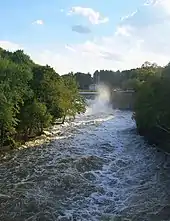 Great Falls and dam with power station, viewed from High Bridge after heavy rainfall in October 2005