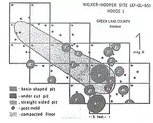 The Walker-Hooper Site (47-GL-65) is a multicomponent prehistoric site complex located on the Grand River in the Upper Fox River drainage area in Green Lake County, Wisconsin. It consisted of at least 2 village sites and several mound groups (all of which are destroyed today). It was excavated by S.A. Barrett under the auspices of the Milwaukee Public Museum in 1921 and again in 1967 by Guy Gibbon of the University of Wisconsin-Milwaukee. The major component of the site is an Upper Mississippian Oneota palisaded village. Other components were also present, mainly Late Woodland but also including Archaic, Early Woodland and Middle Woodland.[1][2]