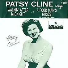- ↑ Cline, Patsy (1957). ""Walkin' After Midnight" / "A Poor Man's Roses (Or a Rich Man's Gold)" (7" vinyl single insert sleeve)". Decca Records. 9-30221.