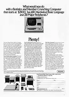 - ↑ Advertisement:Wang 2200, Computerworld - 5 Dec 1973 - Page 9, The new Wang System 2200. What you see is what you get. You get a lot for under $7,000*.