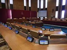 Council meetings are held at Aberdeen Town House on Broad Street, which was built in 1874 and substantially extended in 1975, including a new council chamber.[14] The council's main offices are now in the neighbouring Marischal College. The council moved into the renovated former college building in 2011.[15]