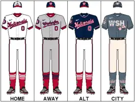 - ↑ Holmes, Dan (November 23, 2004). "Nationals hold true to color code". Nationals.com. MLB Advanced Media. Archived from the original on December 9, 2010. Retrieved February 16, 2019.