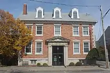 Wauseon was platted 1853 when the Michigan Southern Air Railway was extended to that point.[7] Land speculators bought 160 acres of land, which would become the City of Wauseon.[8] The original name for the city was "Litchfield" after Litchfield, New York, where many of the city's new settlers had emigrated from.[9] However, Hortensia Hayes, the daughter of an early settler, suggested that the new village be named after an Ottawa Tribe Chief named Wauseon, who was forced by the federal government to forfeit their land, before moving to Oklahoma in 1839.[10] The village was incorporated in 1859. With the commercial success that the railroad brought, Wauseon would grow larger than the original seat of Fulton County (Ottokee), and in 1869 Wauseon was named the county seat.[11] The Fulton County Courthouse was built in 1871.