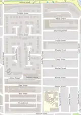 The streets include Wynnstay Street, Voelas Street, Rhiwlas Street, Powis Street, Madryn Street, Kinmel Street, Gwydir Street, Pengwern Street and Treborth Street. Other streets in the vicinity, such as Vronhill Street and Pimhill Street were built on the west side of High Park Street as shown on maps from the early 20th century,[1] although have since been lost through regeneration of newer housing.[2] The moniker Welsh Streets is given as they were constructed by Welsh builders for Welsh migrants seeking work and housing in Liverpool and named after Welsh towns, valleys and villages.[3] When constructed, the street widths were generous,[4] allowing for trees to be planted in the early 20th century which were well-spaced and did not intrude upon the housing.[5]