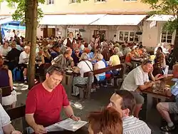 Weltenburg Abbey brewery (Weltenburger Klosterbrauerei) is by some reckonings the oldest monastic brewery in the world, having been in operation since 1050,[2]:30 although the title is disputed by Weihenstephan Abbey. Weltenburger Kloster Barock Dunkel was given the World Beer Cup award in 2004, 2008 and 2012 as the best Dunkel beer in the world. One wing of the abbey which faces the Danube river houses a large restaurant on the ground floor operated by a tenant. The traditional Bavarian menu includes the abbey's cheese and beer, and guests are also served in the monastery courtyard, which houses a large open-air biergarten during the warmer months.