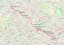 A three-line network was initially planned, and powers were also obtained to build two further routes. Firstly an extension of Line 1 through the city centre to Five Ways, then a second line, Midland Metro Line 2, running to Chelmsley Wood, and then Birmingham Airport.[17] A third line, Line 3 was also proposed, running from Line 1 at Wolverhampton to Walsall, using much of the disused trackbed of the Wolverhampton and Walsall Railway, and then, using the Wednesbury to Brierley Hill trackbed of the South Staffordshire Line (which would close in 1993), running southwards to Dudley intersecting with Line 1 along the route. This would provide a direct link with the new Merry Hill Shopping Centre, which was built between 1984 and 1989.[16]